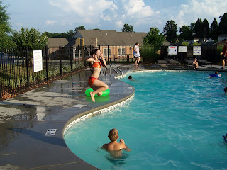 Call it what you will. But whatever you want to call it was fun. Elijah's baseball team got together today for the last hurrah. The party was at Major's house. And let me tell you, it was MAJOR. It was by far the nicest home I have ever been inside. Not including Biltmore and things of that nature. It was a 5000 square foot home. All cherry wood in the kitchen and mahogany throughout the rest of the house. I was amazed. Each of the 5 bedrooms had its own really large bathroom. The master bedroom's bath was larger than my living room. And the Jacuzzi tub would seat my whole family at once (there are 7 of us). Their yard was just as impressive as the house. There was a salt water swimming pool that was filled by three separate waterfalls. It was nothing short of beautiful. Well I could go on and on. But I guess you would get bored and I would be soaked from drooling. So I will end by saying WOW!
